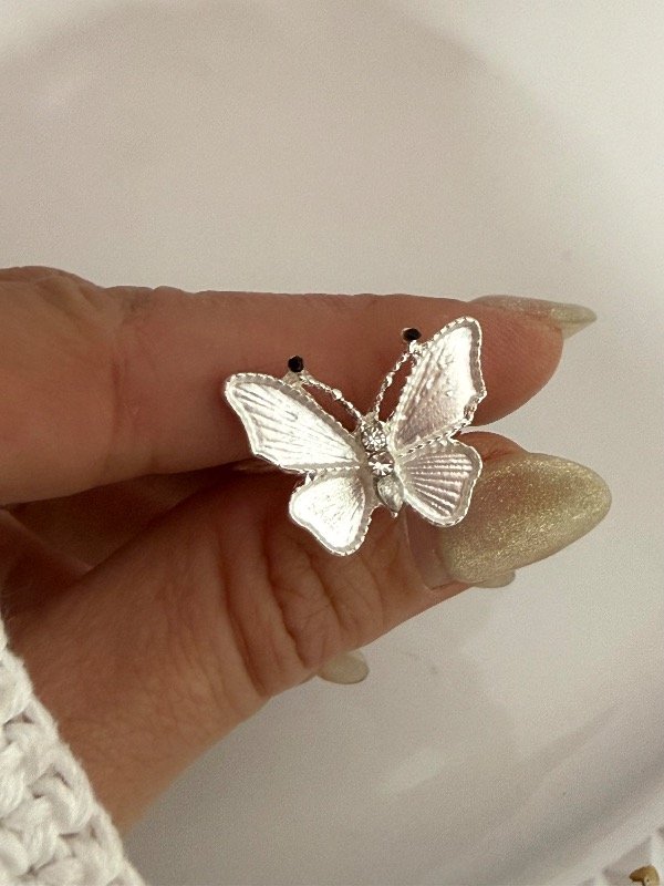 NB812 Anillo mariposa blanca acero blanco