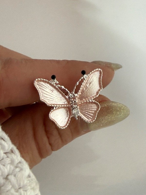NB813 Anillo mariposa rosa acero blanco