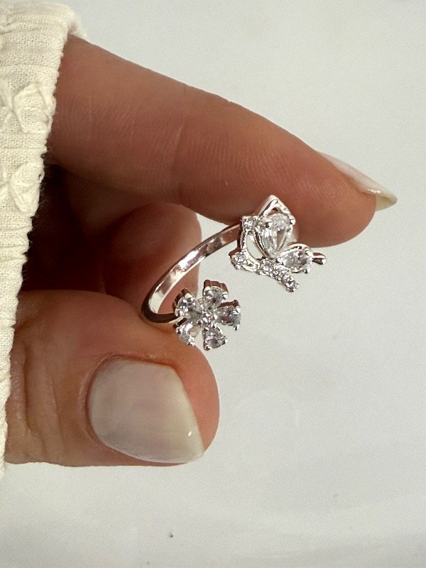 NB845 Anillo mariposa y flor con cubik cristal y micropave