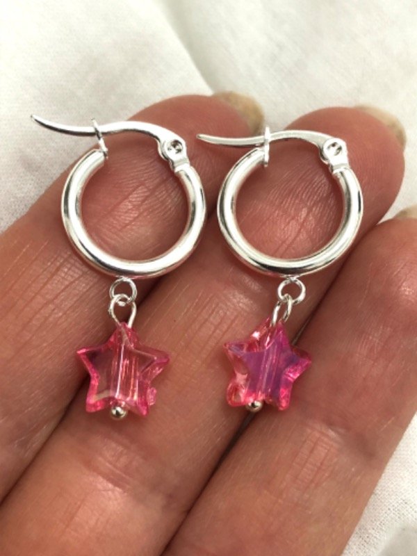 AB1141 Argollitas con dije estrella fucsia tornasol