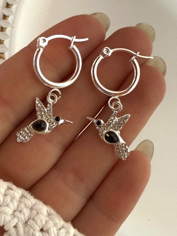 AB1679 Aros colibrí con strass y cubik negro acero blanco