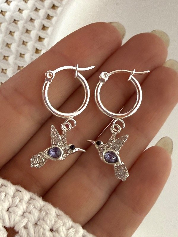 AB1683 Aros colibrí con strass y cubik lila acero blanco