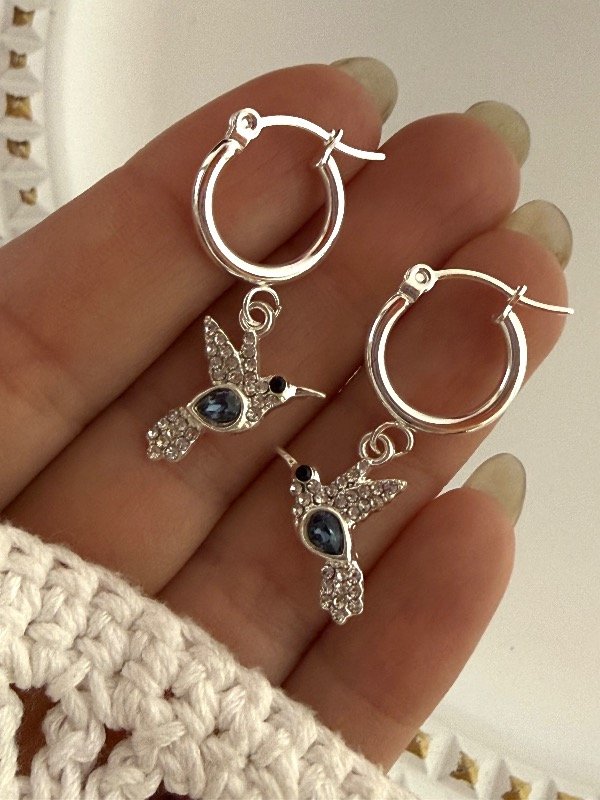 AB1684 Aros colibrí con strass y cubik azul acero blanco