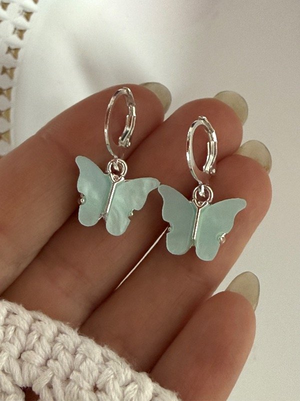 AB1686 Aros click mariposa Aqua acero blanco