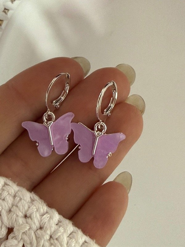 AB1690 Aros click mariposa lila acero blanco