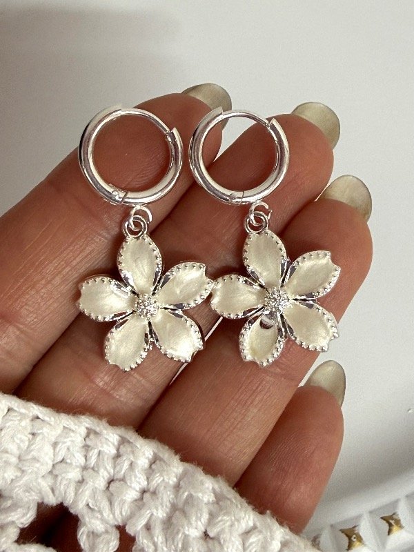 AB1693 Aros click flor blanca acero blanco