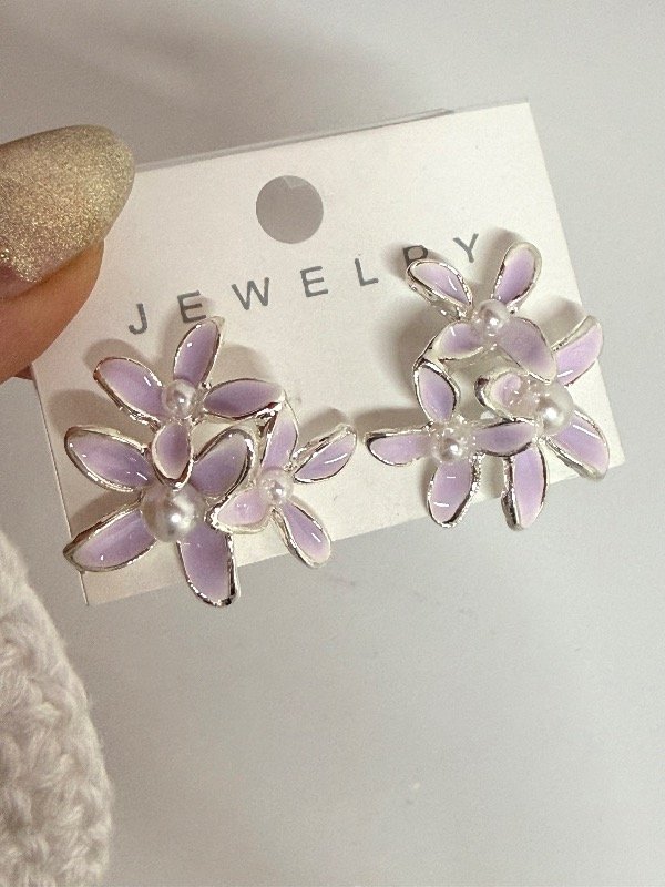 AB1696 Aros triple flor lila pasante acero blanco