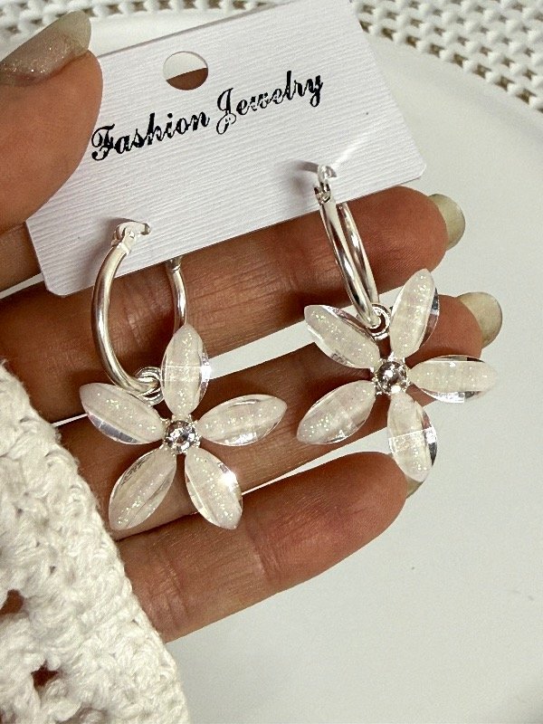 AB1699 Aros Argolla maxi flor blanca acero blanco