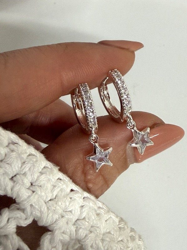 AB1708 Aros click estrella con micropave y cubik cristal acero blanco