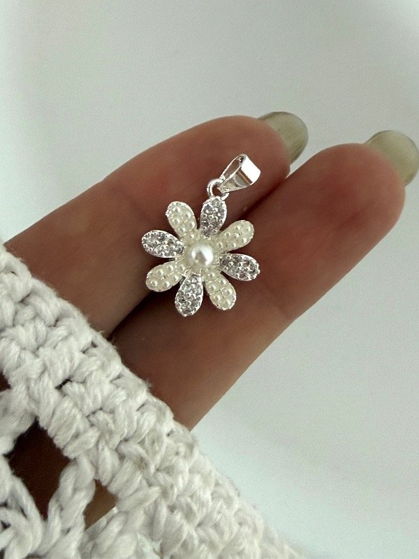 DB584 Dije flor con micropave perla y micro perlas 1,5 cm