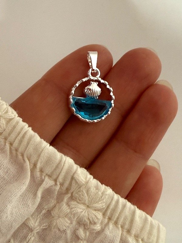 DB608 Dije mar con cubik celeste y ostra 2 cm