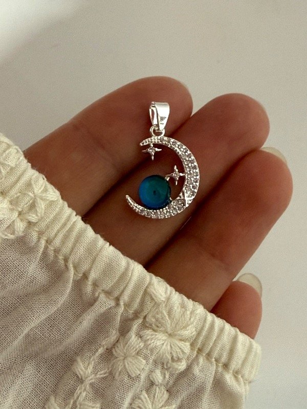 DB611 Dije luna con piedra y micropave 2 cm