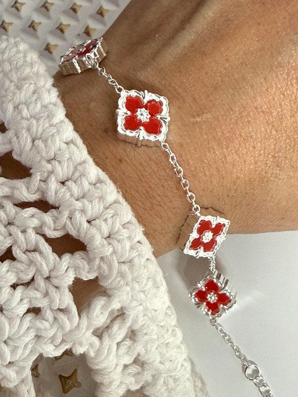 PB1162 Pulsera flores rojas acero blanco 18 + 5 cm