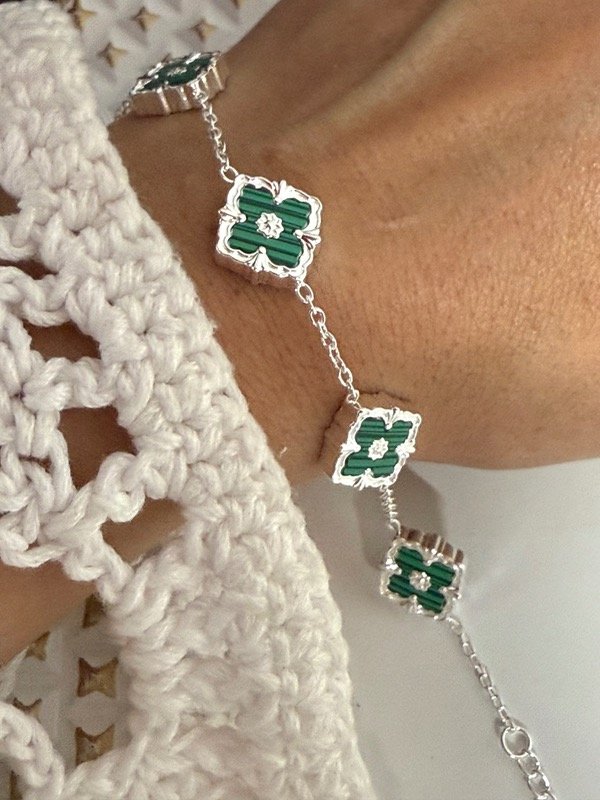 PB1164 Pulsera flores verdes acero blanco 18 + 5 cm