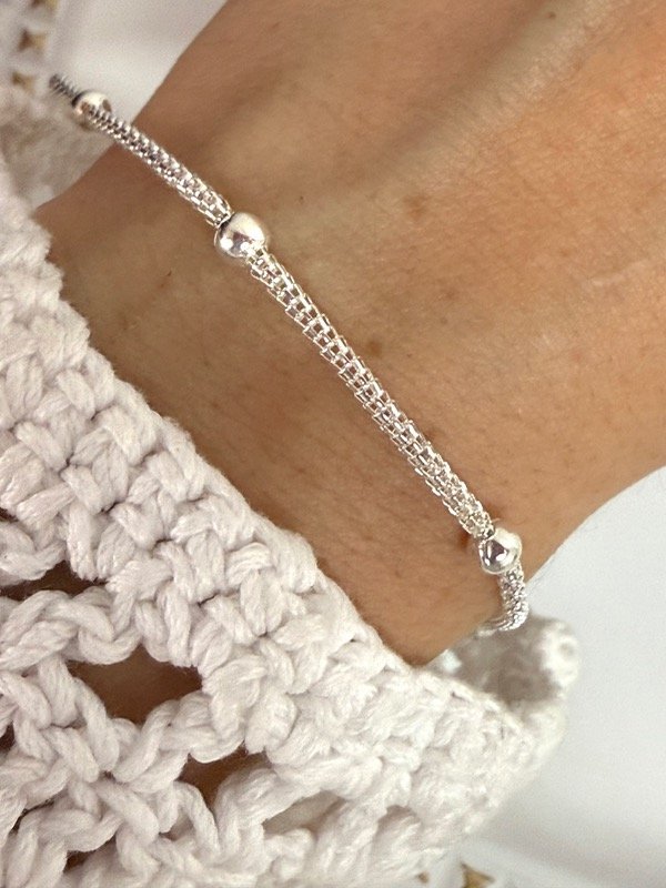 PB1169 Pulsera choclo con bolitas acero blanco 18 cm