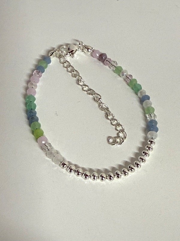 PB1208 Pulsera bolitas y cristal de roca 17 + 5 cm