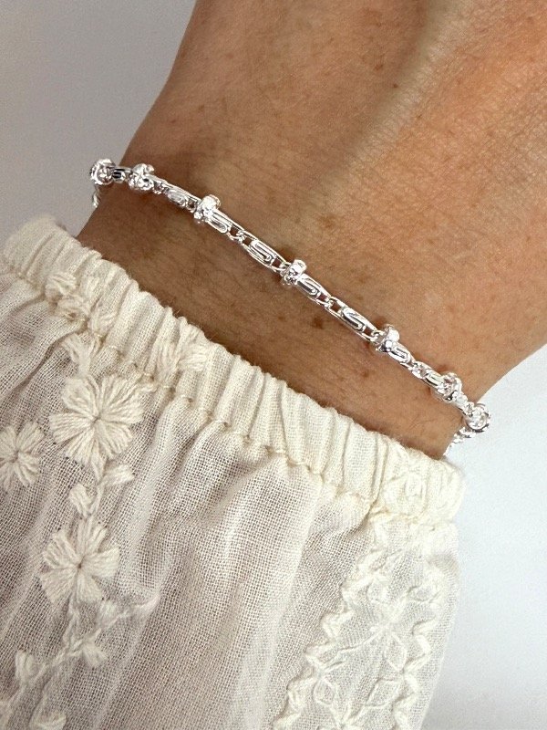 PB1219 Pulsera eslabón flor con bolitas 18 cm