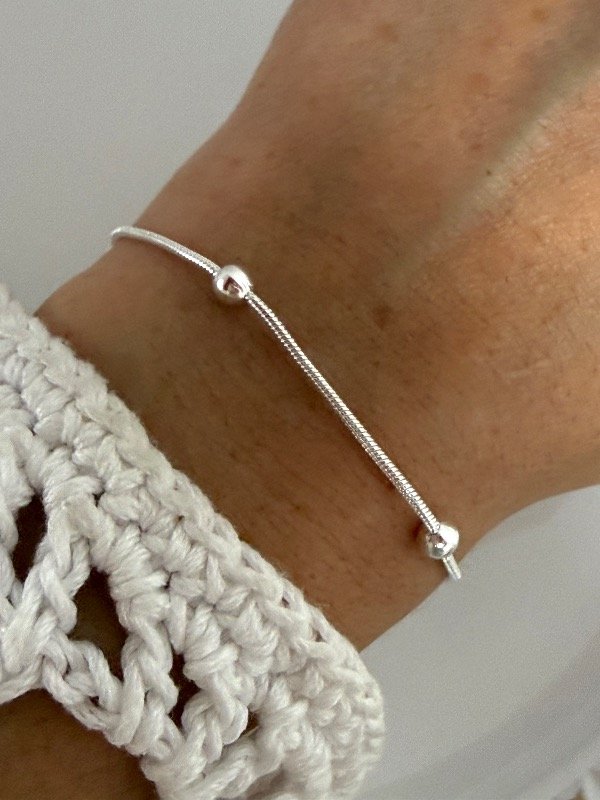 PB1244 Pulsera cola de rata con bolitas 18 cm acero blanco