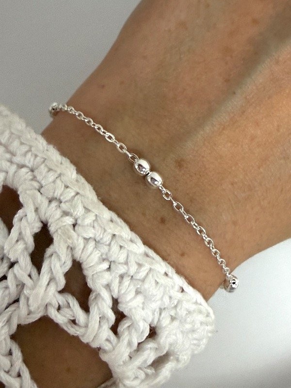 PB1247 Pulsera fina bolita doble 18,5 cm acero blanco