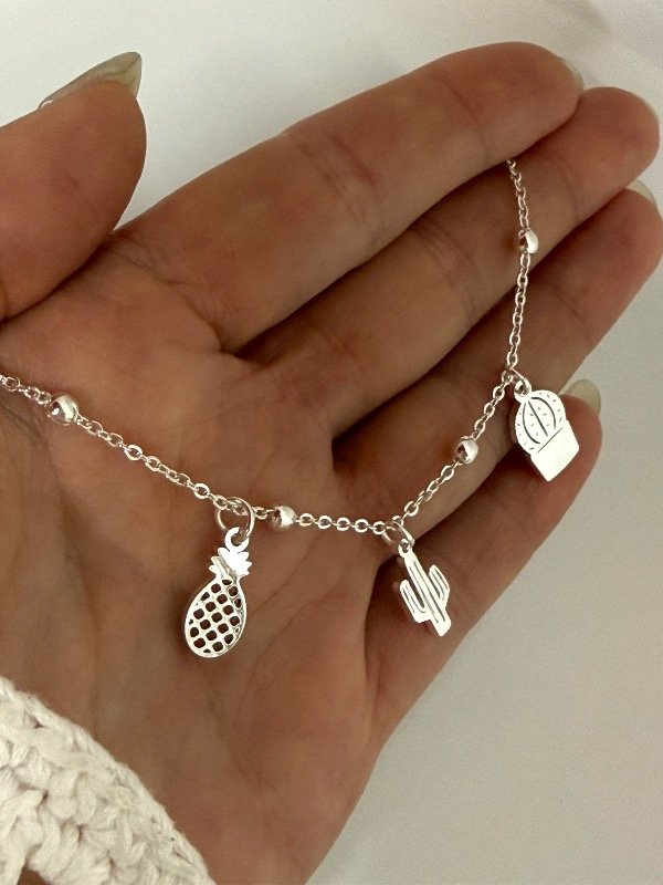 PB1253 Pulsera piña y cactus 19 cm acero blanco