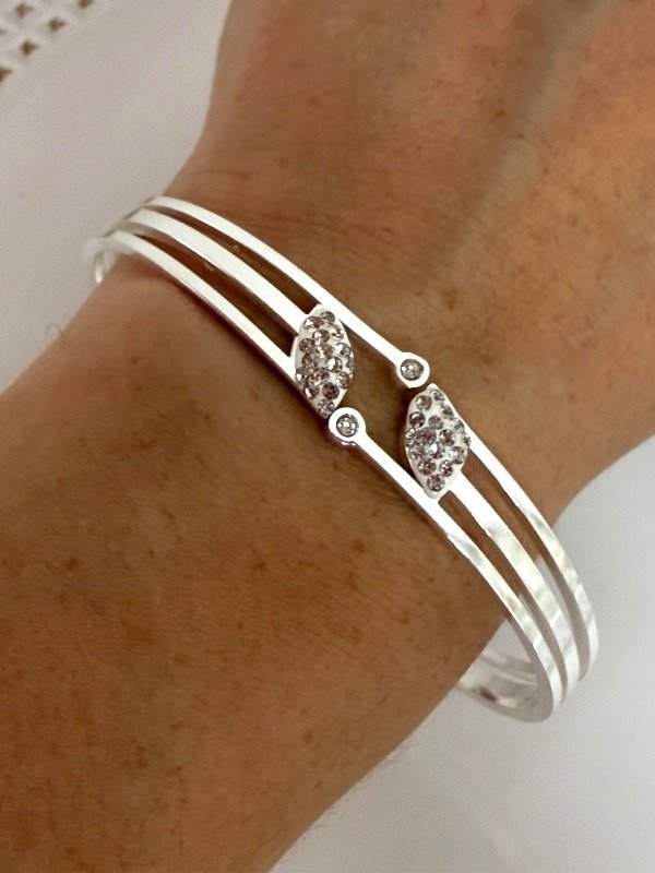 PB1260 Pulsera semiesclava con strass acero blanco