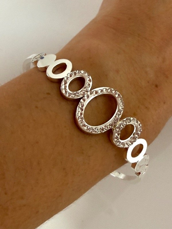 PB1273 Pulsera semiesclava óvalos acero blanco