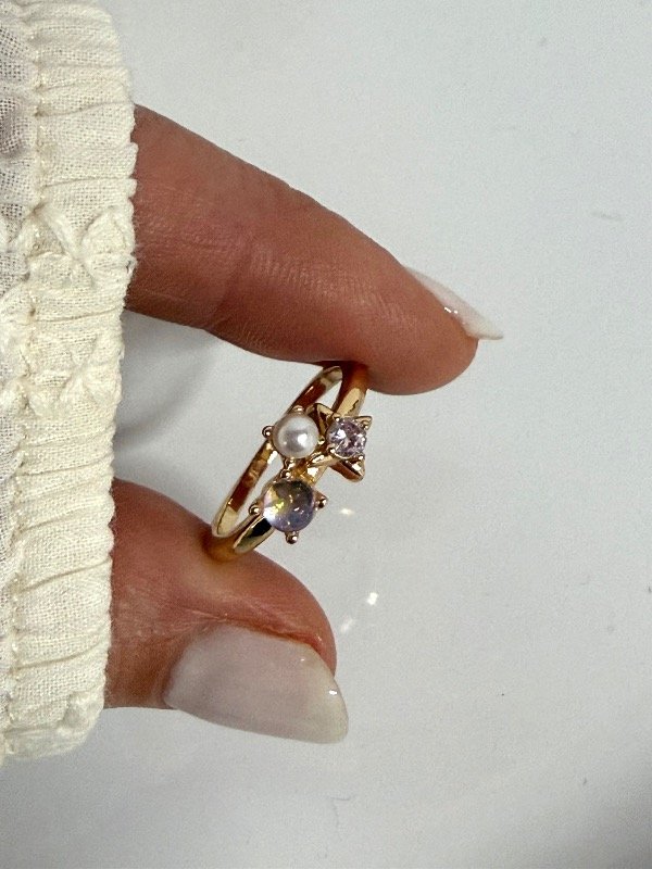 ND109 Anillo estrellita y perla con micropave