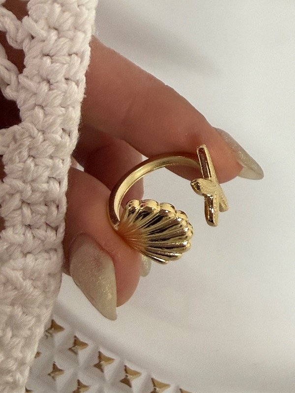 ND490 Anillo ostra y estrella de mar acero dorado