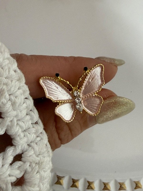 ND494 Anillo mariposa rosa acero dorado