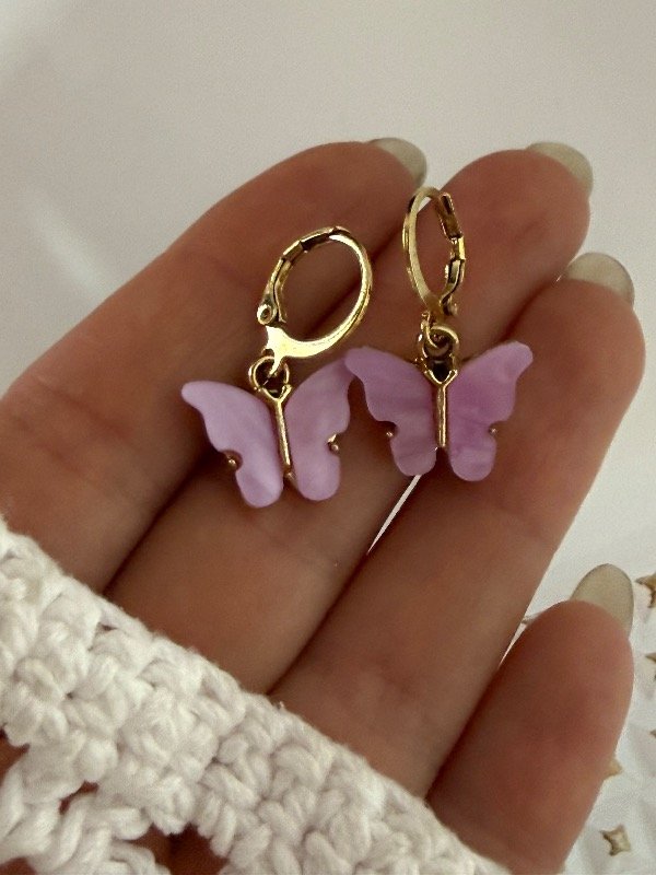 AD445 Aros click mariposa lila acero dorado