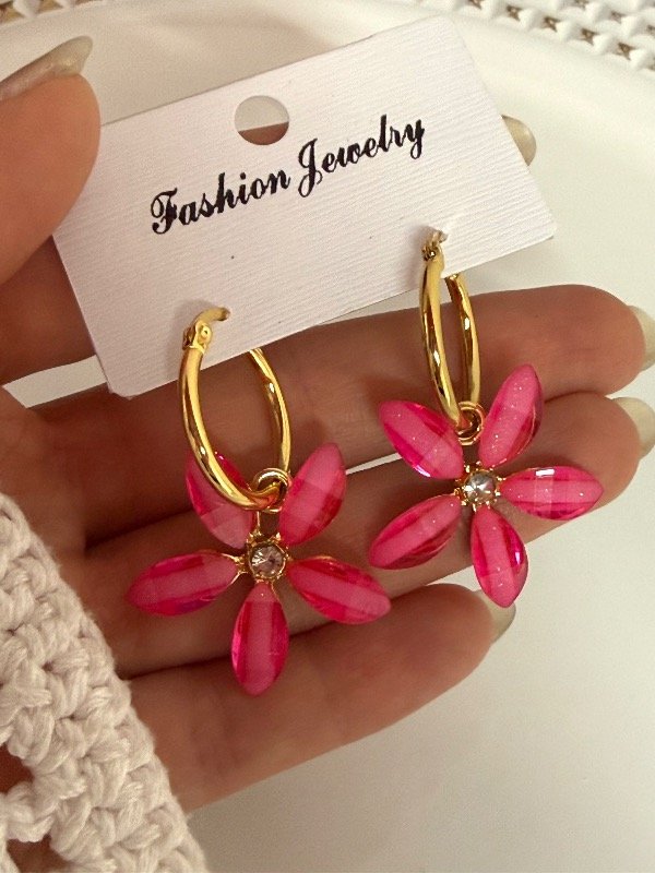 AD451 Aros argolla maxi flor fucsia acero dorado