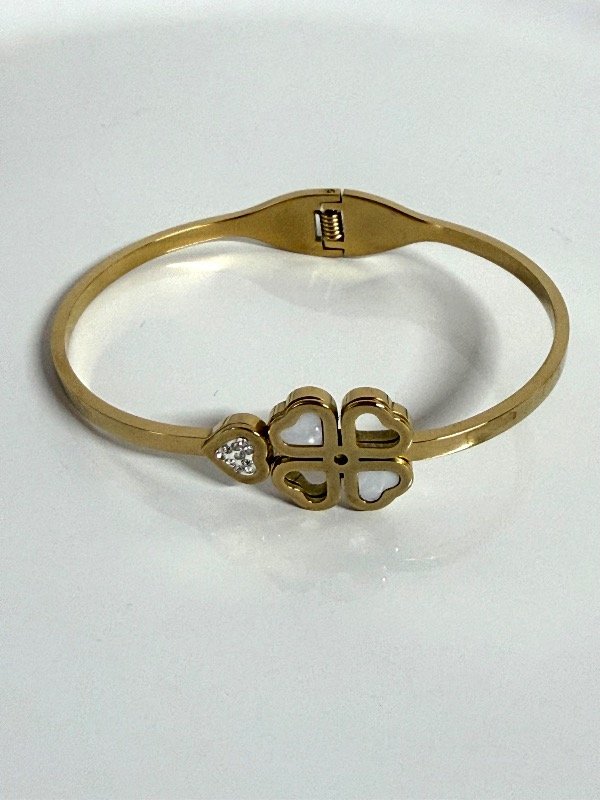 PD194 Pulsera semiesclava trebol acero dorado