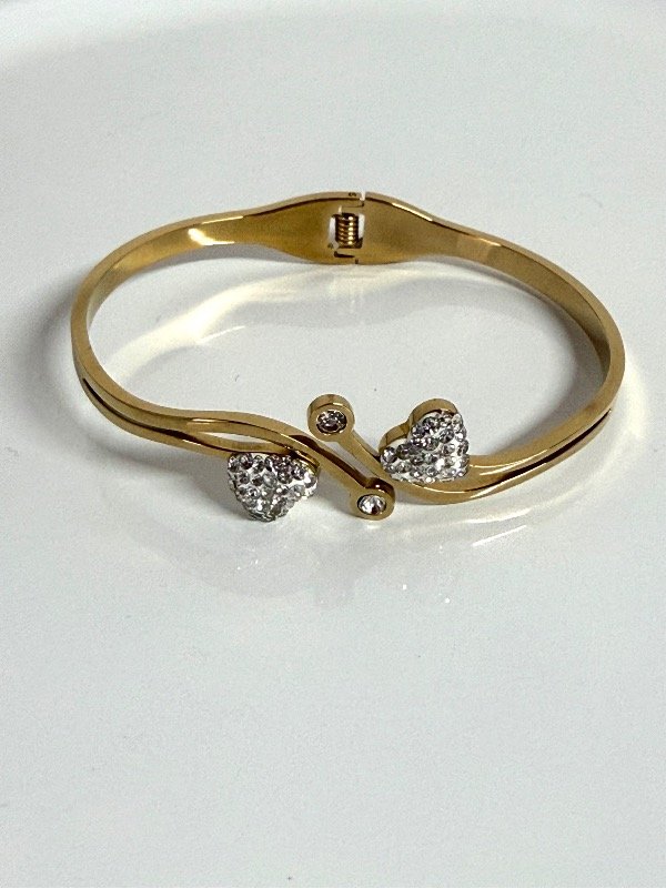 PD195 Pulsera semiesclava corazoncitos con strass acero dorado