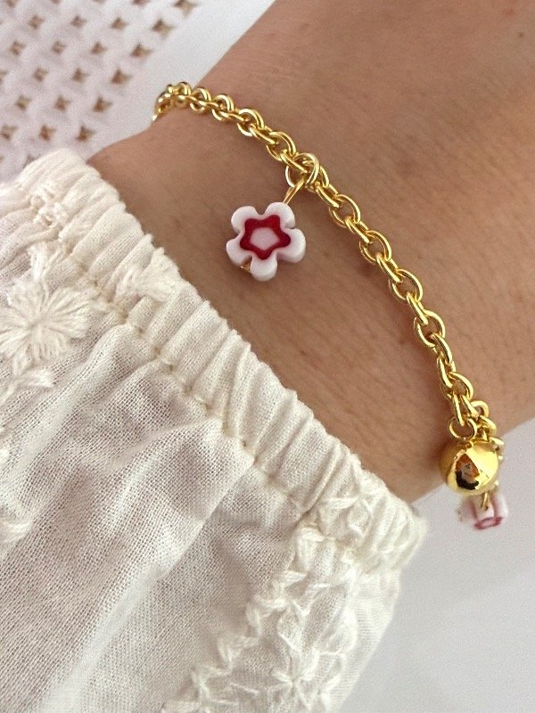 PD226 Pulsera con florcitas y pelotitas 18 cm