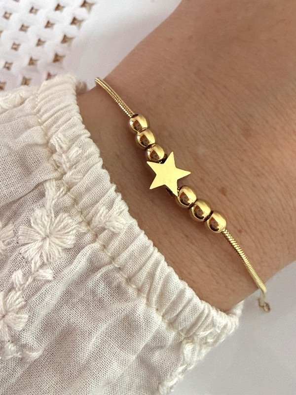 PD229 Pulsera cola de rata con bolitas y estrellita 18 cm