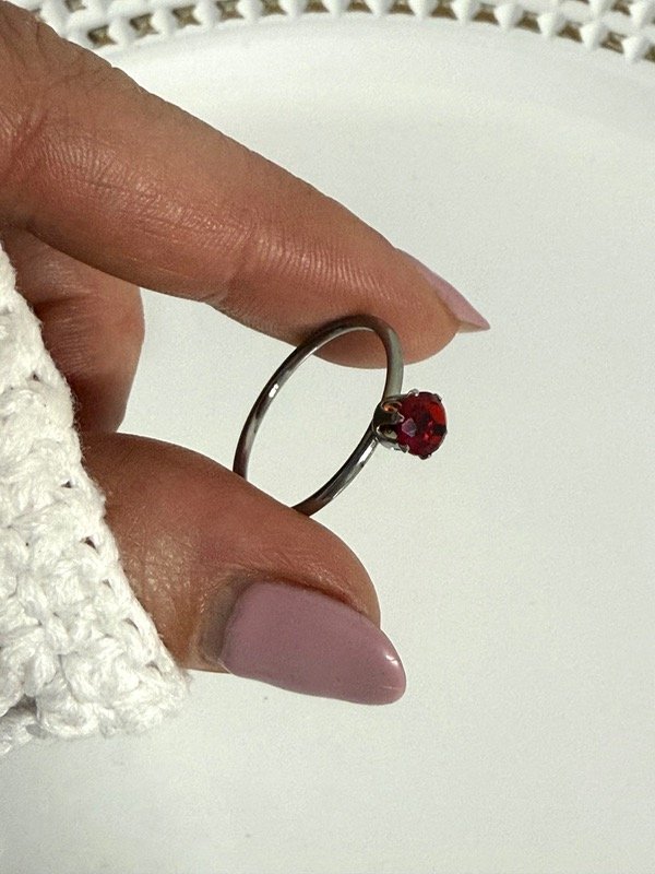 N493 Anillo piedra engarzada cubik rojo acero quirúrgico