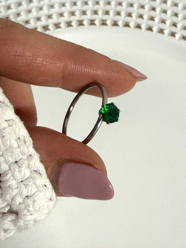 N494 Anillos piedra engarzada cubik verde acero quirúrgico