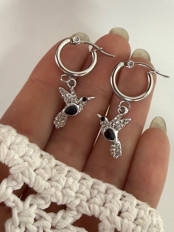 A1263 Aros colibrí strass y cubik negro acero quirúrgico