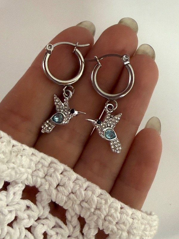 A1265 Aros colibrí strass y cubik celeste acero quirúrgico