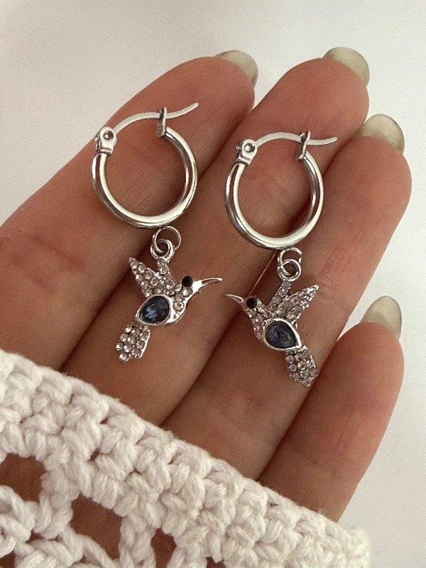 A1268 Aros colibrí con strass y cubik azul acero quirúrgico