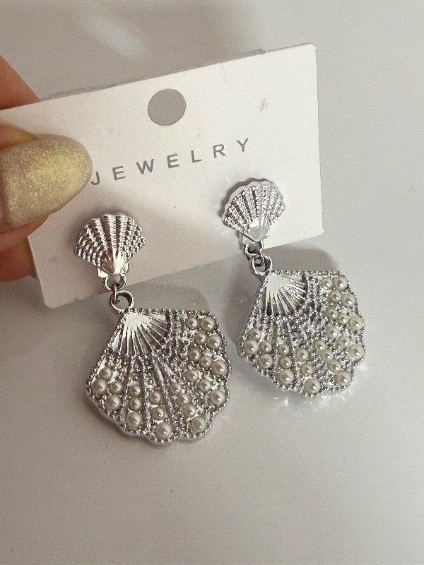 A1270 Aros colgantes de mar con perlitas acero quirúrgico 4 cm