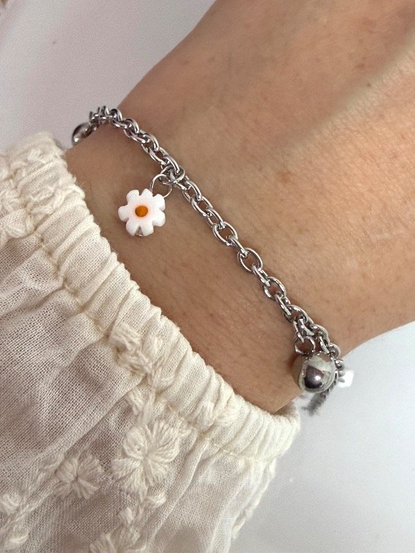 P764 Pulsera con florcitas y pelotitas 18 cm