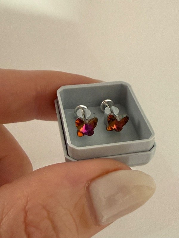 PP0163 Abridores Swarovski mariposa tornasolada rojiza