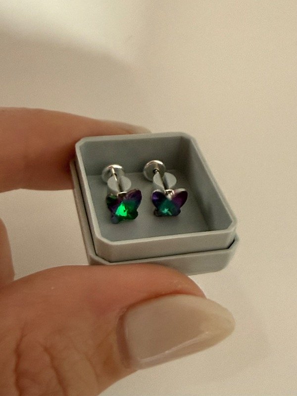 PP0167 Abridores Swarovski mariposa tornasolada lila/verde