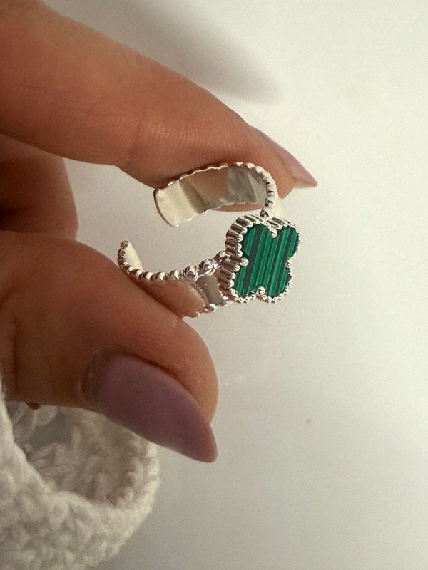 NB760 Anillo van cleef verde acero blanco talle único regulable