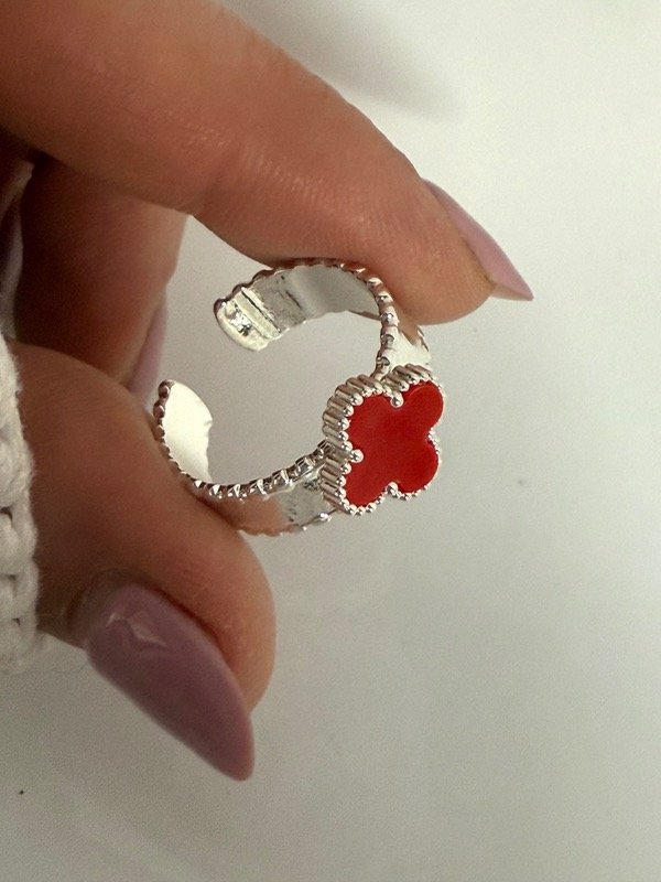NB763 Anillo van cleef rojo acero blanco talle único regulable
