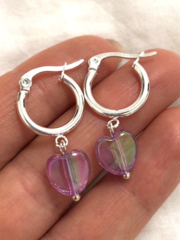 AB1136 Argollitas con dije corazón lila tornasol