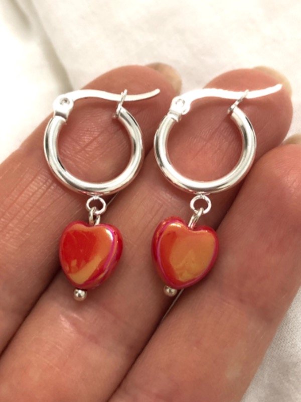 AB1138 Argollitas con dije corazón rojo tornasol