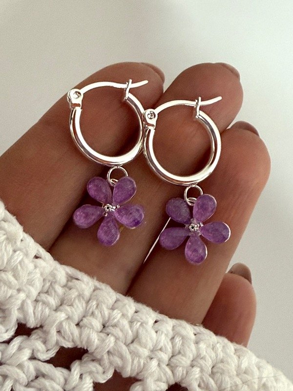 AB1573 Aros argollita flor lila acero blanco