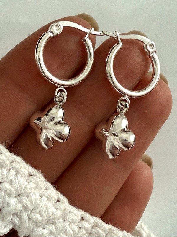 AB1600 Aros Argollitas flor inflada acero blanco